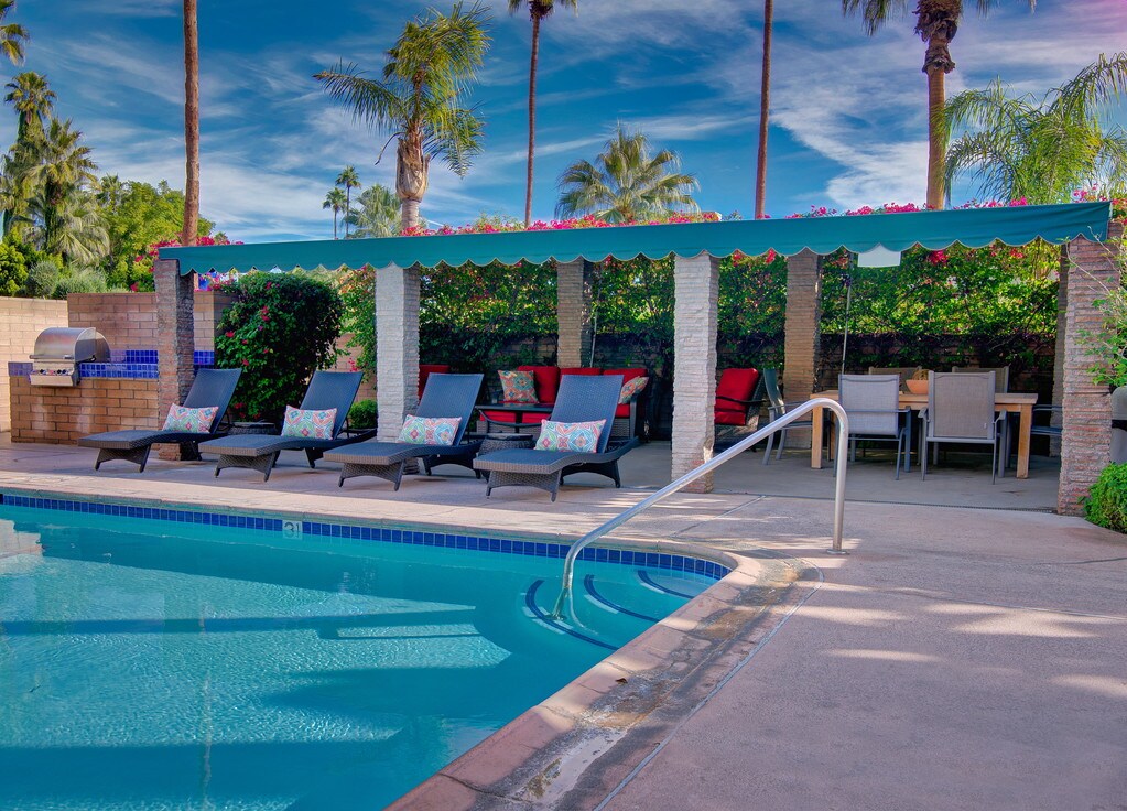 LOCATION LOCATION LOCATION! Across from ACE HOTEL and KOFFI in South Palm Springs! Bermuda Palms is a tropical oasis in the desert with sparkling pool, spa, numerous patio areas, BBQ island and cabana for relaxing in the desert sun! Low density building and walking distance to all major venues in Palm Springs.