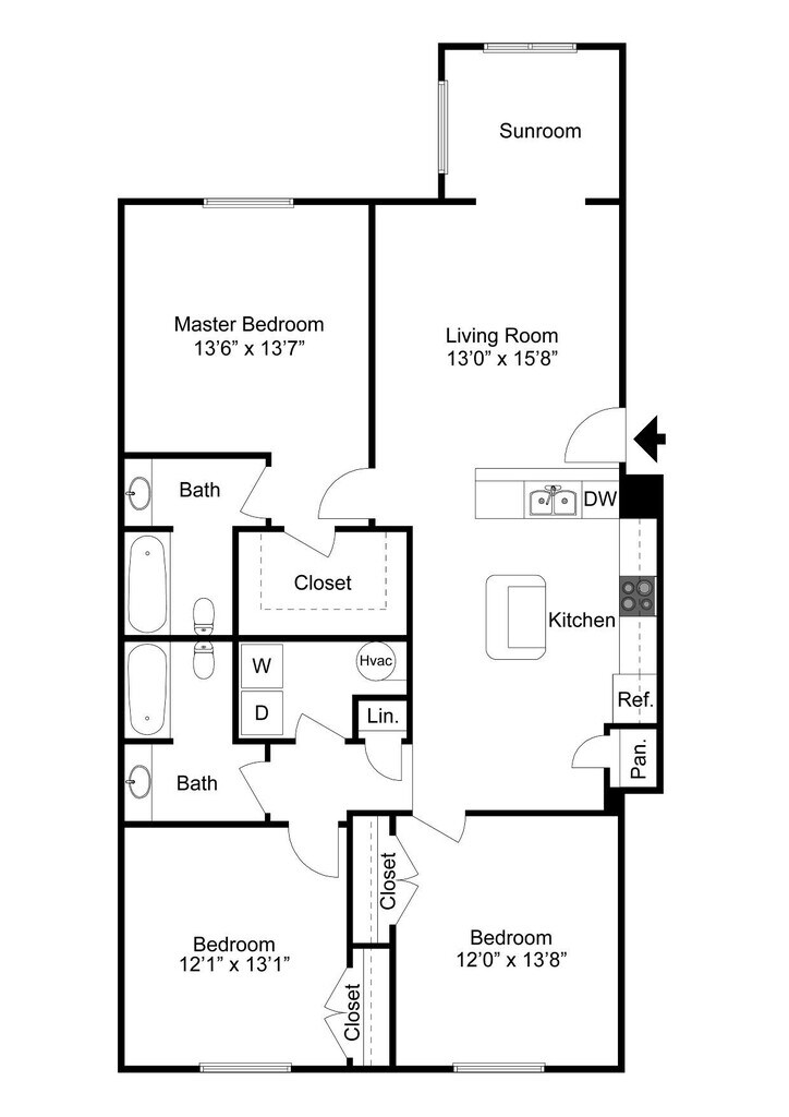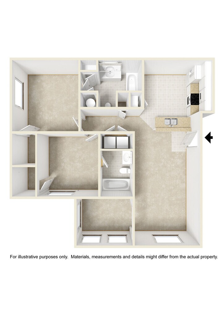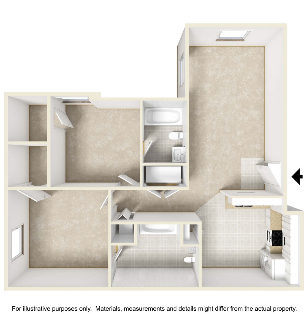 Apartment Model: Two Bedroom | 950 - 1035 sfFrom $1,3772 Bedroom, 2 Bath, 1035 sq ftAvailable Now![]()