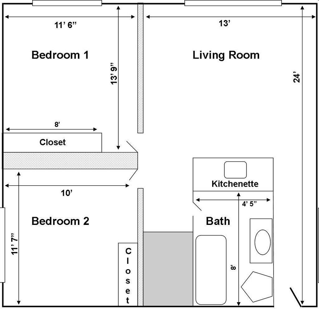 2 Beds, 1 Bath, 700 sq ftAvailability Details