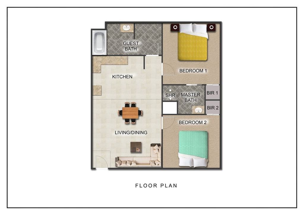2 Beds, 2 Baths, 950 sq ftModel Gallery