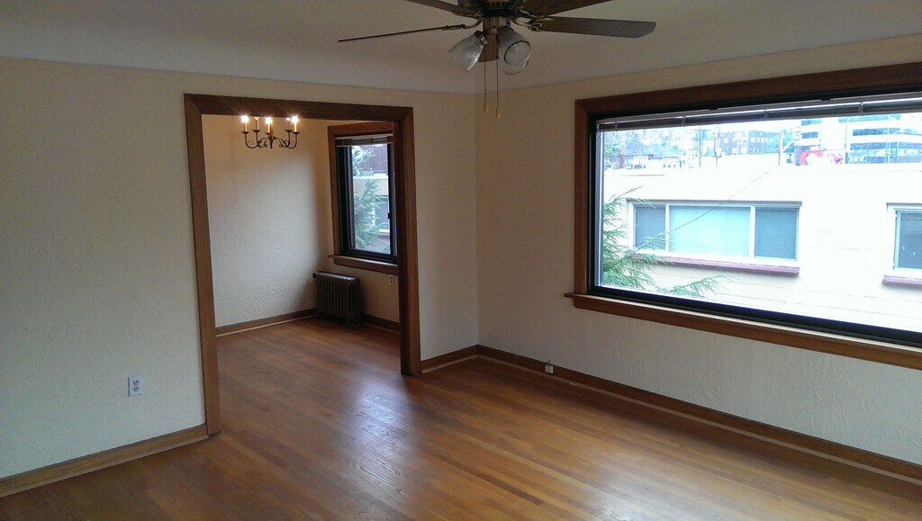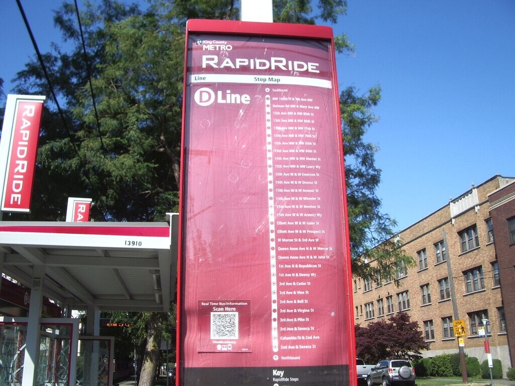 three blocks west of Queen Anne Avenue. On Rapid Ride bus route to Ballard, to downtown. Walk in Closet. Hardwood floor. Top floor.