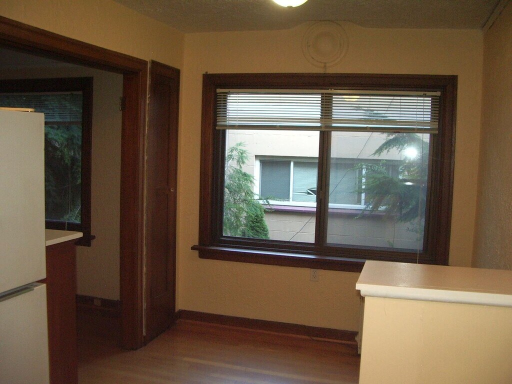 Bright, 620 sq ft. corner unit in vintage 1920's brick building. Vintage brick apartment building – Bus stop on the street. Easy access to I-5 and Highway 99. Convenient to Seattle Center, Key Arena, Gates Foundation, Amazon, Google, Theaters, Restaurants, and of course downtown. Circa 1926 Building with hardwood floors, vintage kitchen with updated with granite counter tops and new cabinets; larger window for excellent natural light year round, radiant heat in all units allows for increased heat in the winter without increased utility bills. Additional assigned storage included at no cost.''Vintage brick apartment building