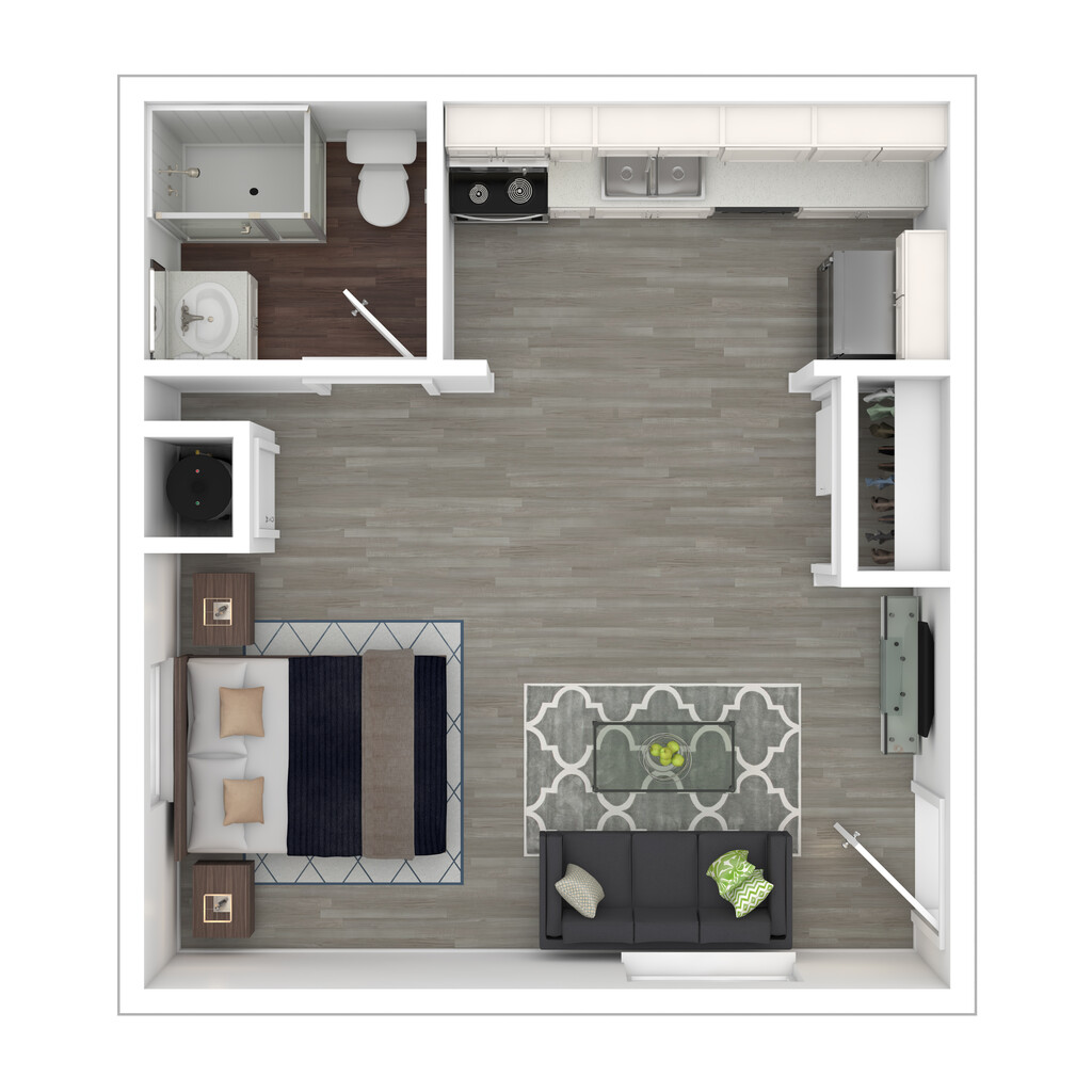 Studio, 1 Bath, 300-325 sq ftAvailable NowModel Gallery