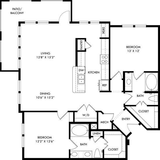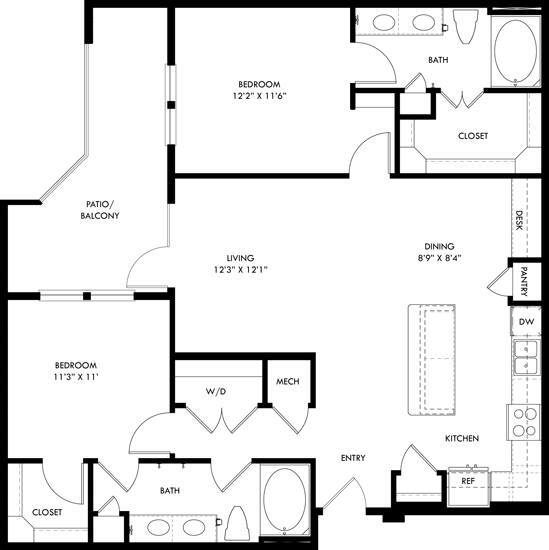 Studio, 1 Bath, 672 sq ftAvailable NowModel Gallery