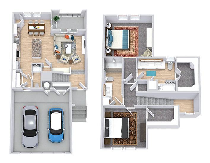 - Two and three bedroom townhomes