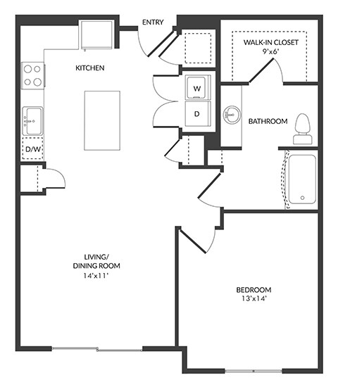 1 Bed, 1 Bath, 703-726 sq ftAvailable January 3, 2026Model Gallery
