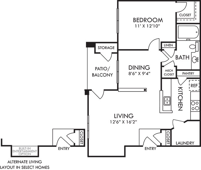1 Bed, 1 Bath, 633 sq ftModel Gallery