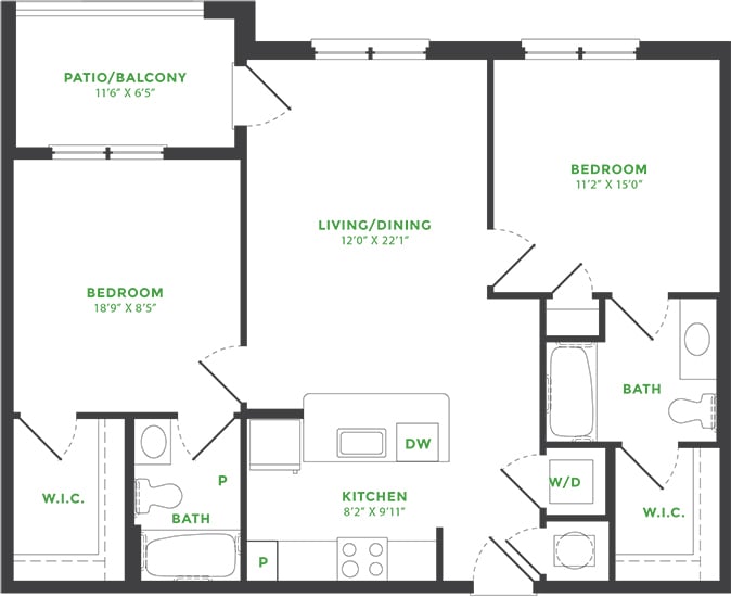1 Bed, 1 Bath, 756 sq ftAvailable NowModel Gallery