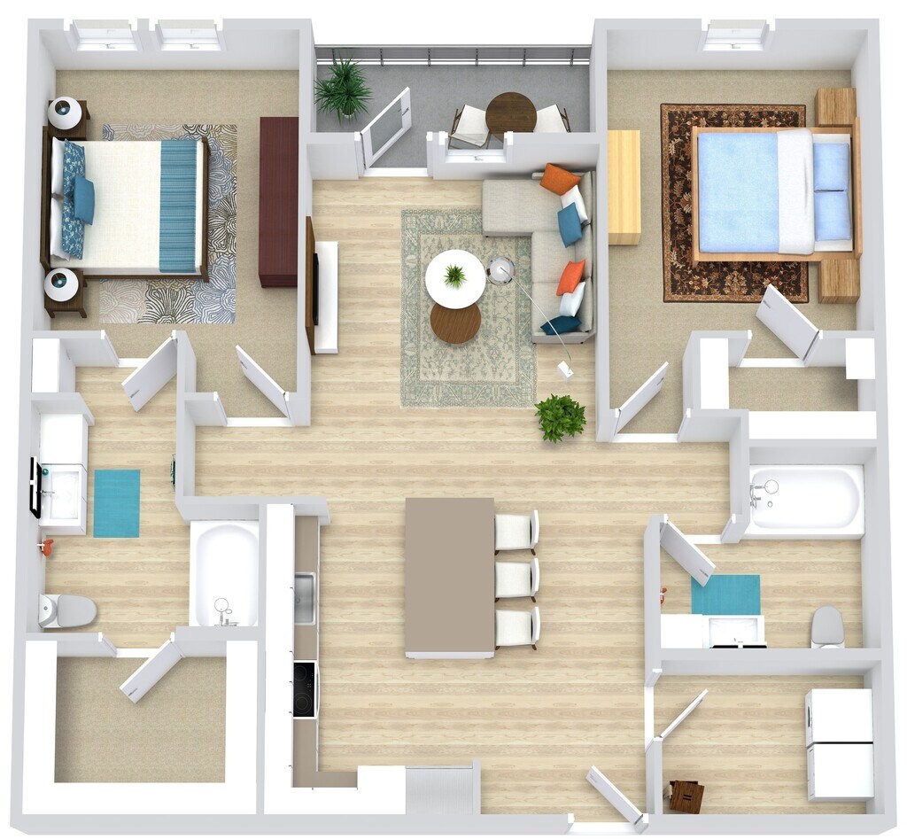 1 Bed, 1 Bath, 756 sq ftModel Gallery