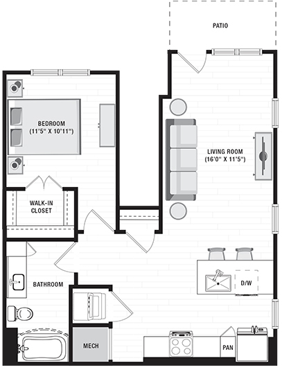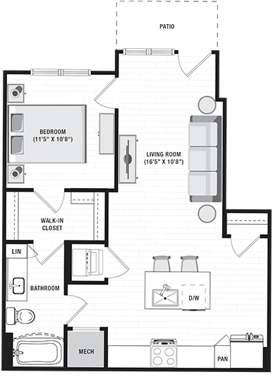 1 Bed, 1 Bath, 785 sq ftModel Gallery