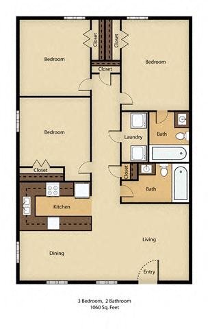 3 Bedroom, 2 Bathroom - Floorplan 1 Apartment Unit: 0809Apartment Model: 3 Bedroom, 2 Bathroom3 Bedroom, 2 Bath, 1060 sq ftAvailable NowApartment Unit: 1112Apartment Model: 3 Bedroom, 2 Bathroom3 Bedroom, 2 Bath, 1060 sq ftAvailable NowApartment Unit: 0301Apartment Model: 3 Bedroom, 2 Bathroom3 Bedroom, 2 Bath, 1060 sq ftAvailable Now