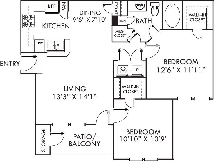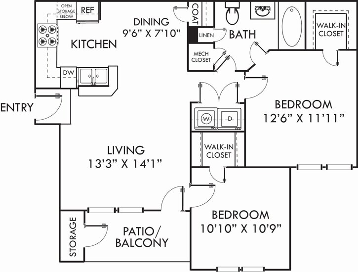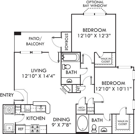 2 Beds, 1 Bath, 864 sq ftAvailable NowModel Gallery