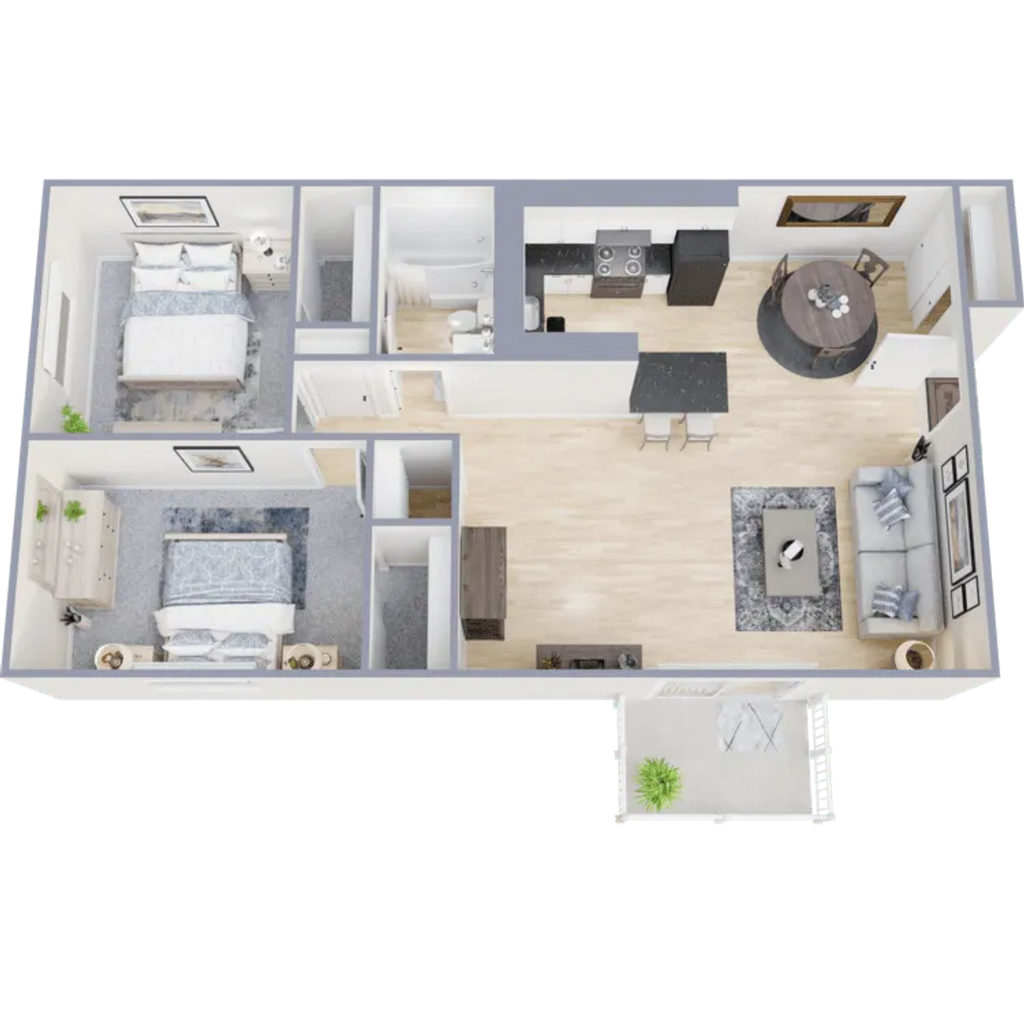 2 Beds, 1 Bath, 850 sq ftAvailable NowModel Gallery