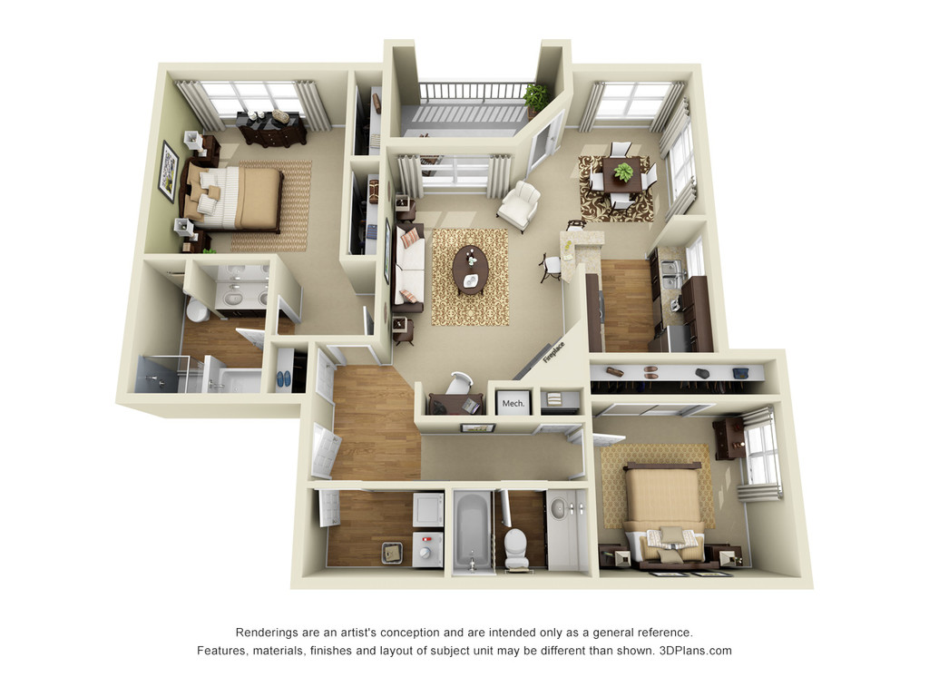 2 Beds, 2 Baths, 1240 sq ftAvailable NowModel Gallery