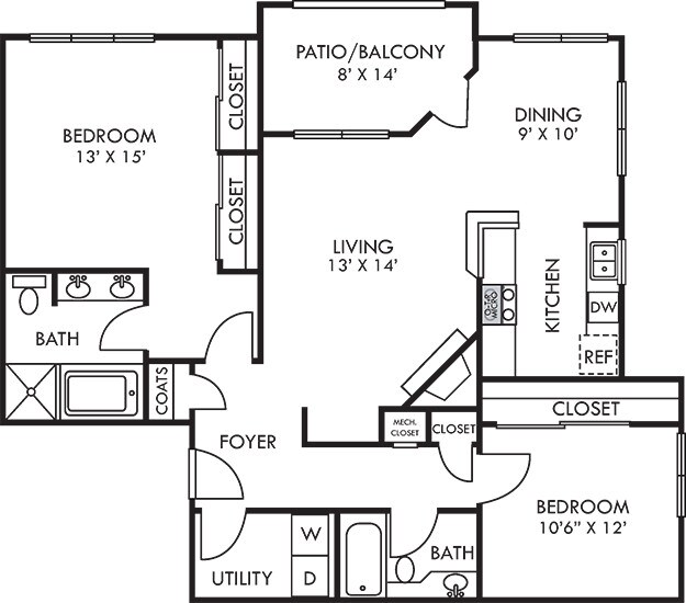 2 Beds, 2 Baths, 1219 sq ftAvailable NowModel Gallery