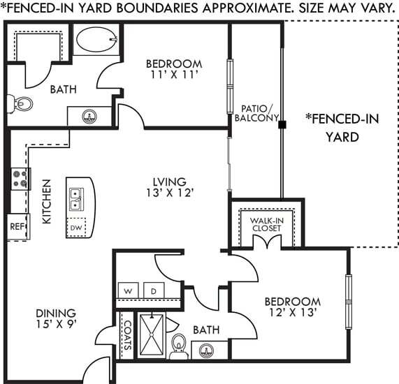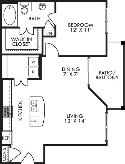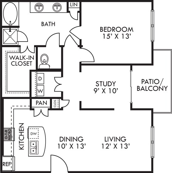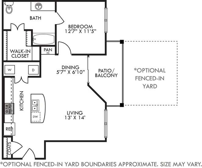 The Bluebonnet - Floorplan 3 1 Bedroom