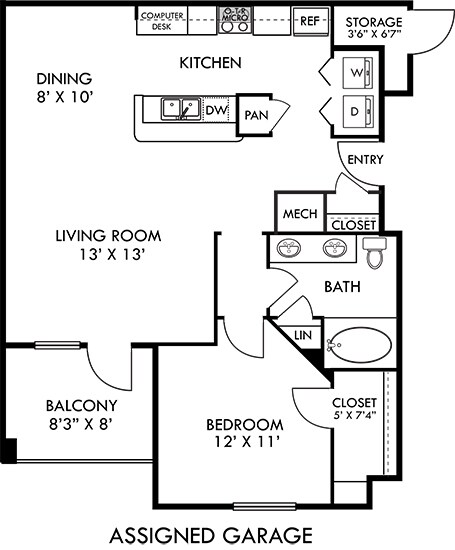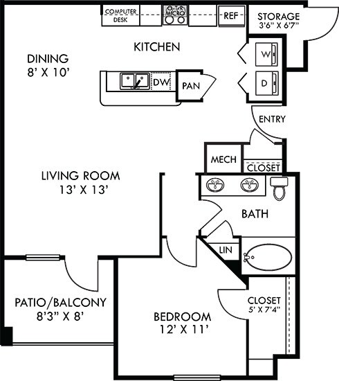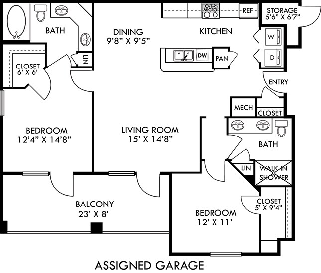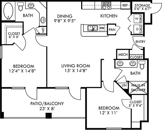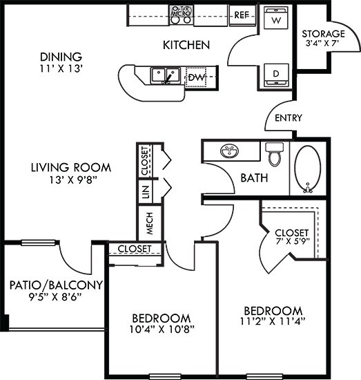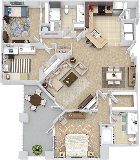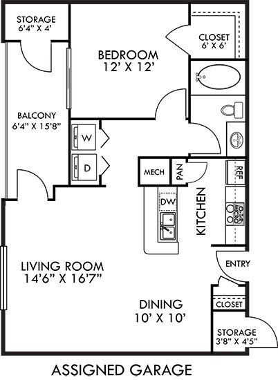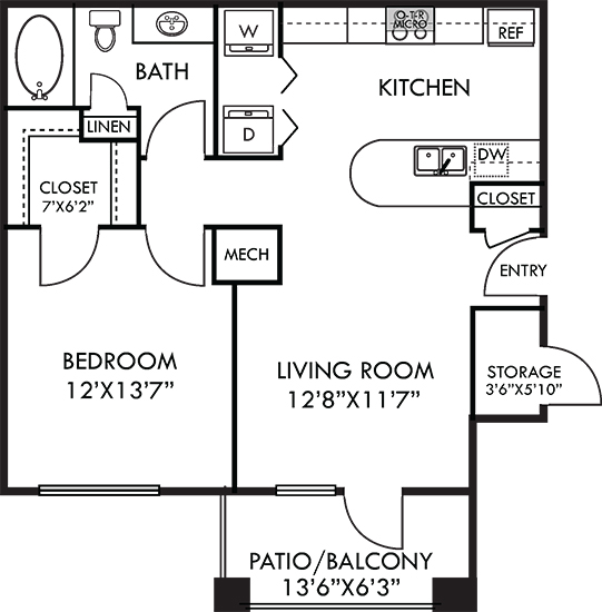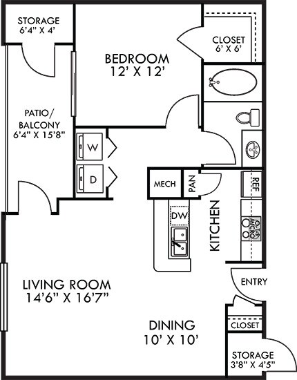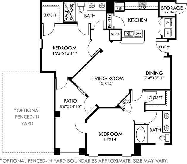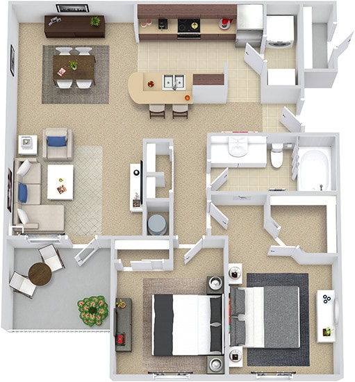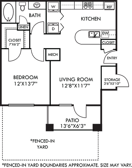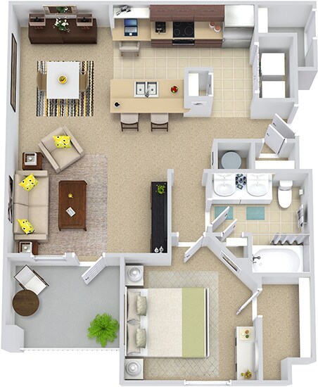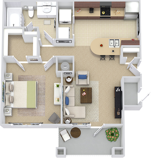 Apartment Model: Madrid with Fenced-In Yard$1,2641 Bedroom, 1 Bath, 809 sq ftAvailable November 7, 2025![]()