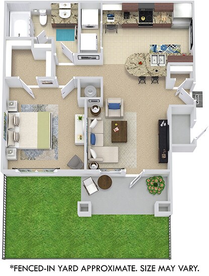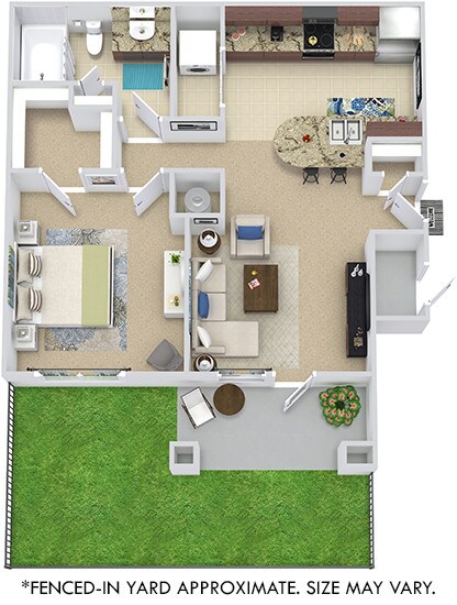 Madrid with Fenced-In Yard - Floorplan 2 Apartment Unit: 6111Apartment Model: Madrid with Fenced-In Yard$1,2641 Bedroom, 1 Bath, 809 sq ftAvailable November 7, 2025Grenada