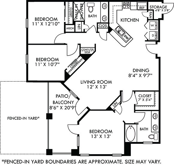 - Fenced-in Yard Available*