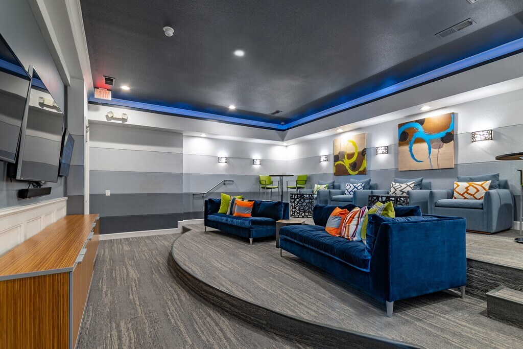 - 24-Hour Media Room with TV Wall and Comfy Seating