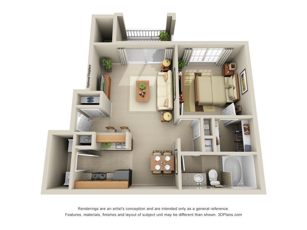 1 Bed, 1 Bath, 701 sq ftAvailable NowModel Gallery