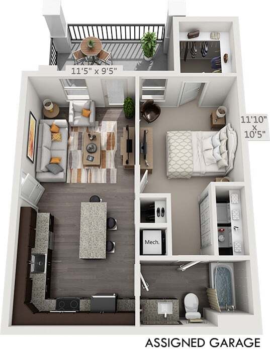 Miller - Floorplan 2 Apartment Unit: 1215Apartment Model: Miller$1,1591 Bedroom, 1 Bath, 644 sq ftAvailable December 2, 2025Vera with Assigned Garage