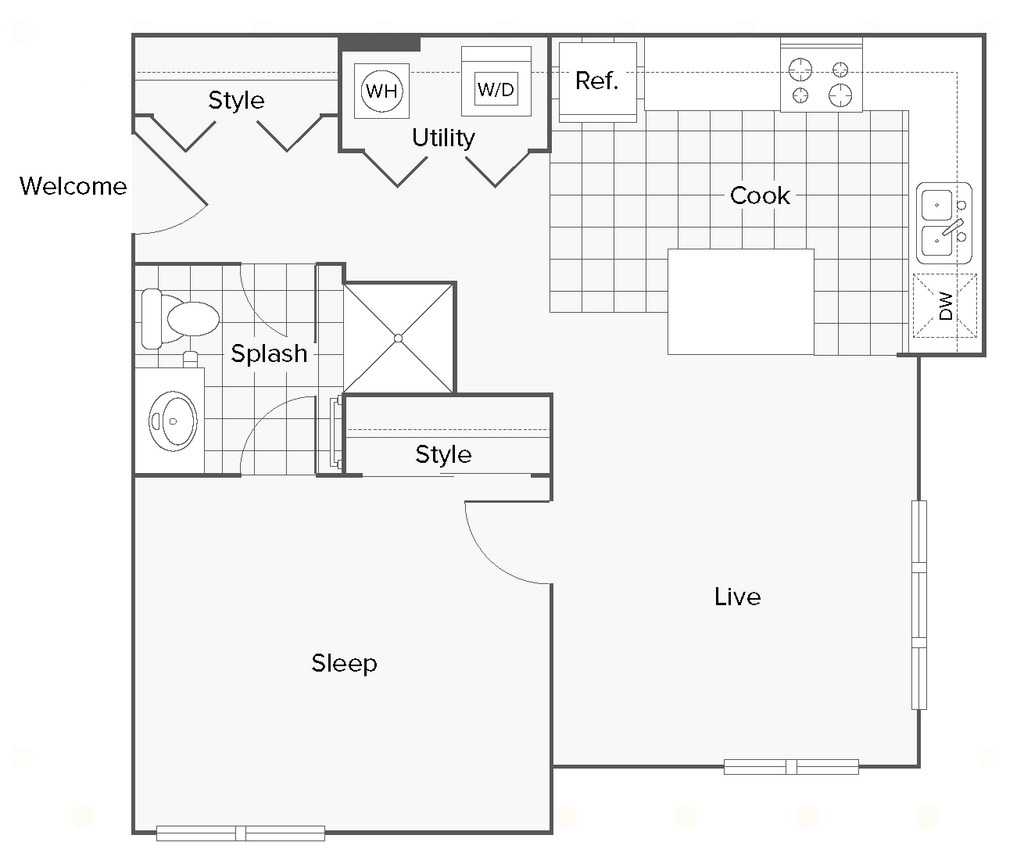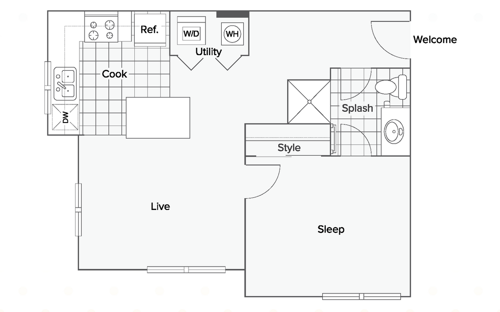 1 Bed 1 Bath - Floorplan 6 Aggie-D