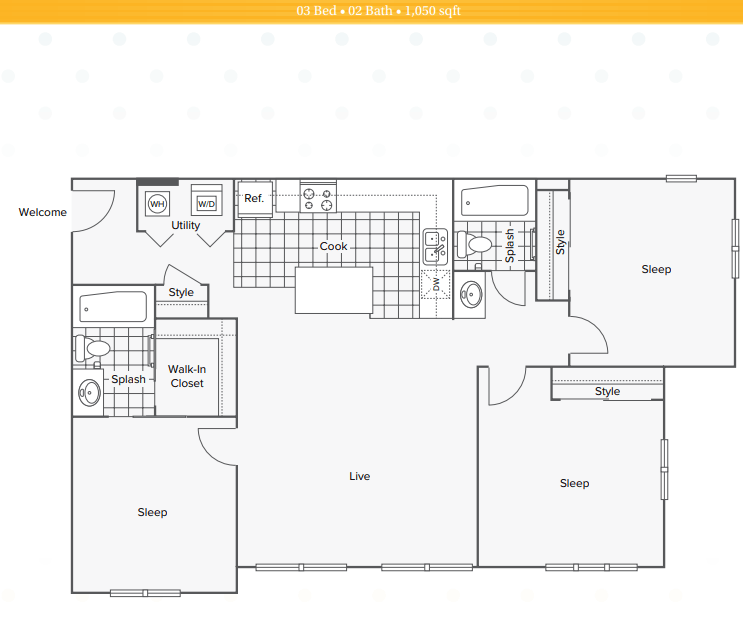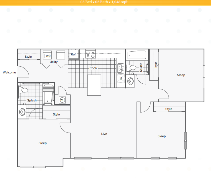 3 Beds, 2 Baths, 349 sq ftAvailable NowModel Gallery