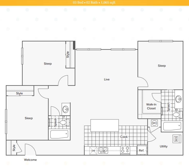 3 Beds, 2 Baths, 1065 sq ftAvailability Details