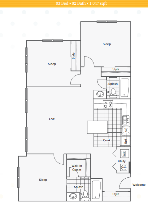 3 Beds, 2 Baths, 1047 sq ftAvailability Details