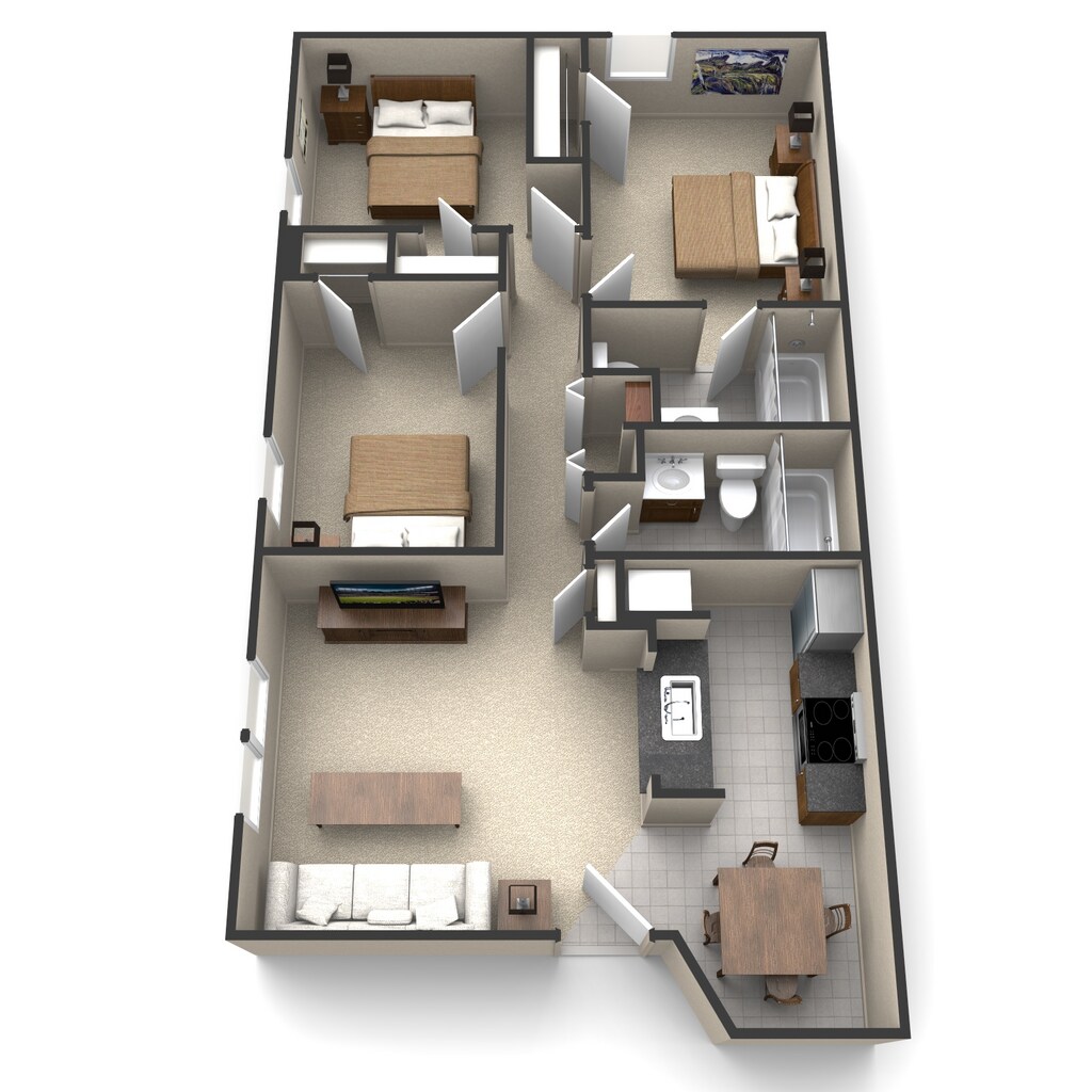 3 Beds, 2 Baths, 896 sq ftModel Gallery