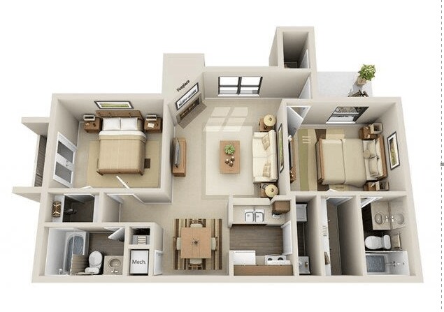 2 Beds, 2 Baths, 930 sq ftAvailable NowModel Gallery
