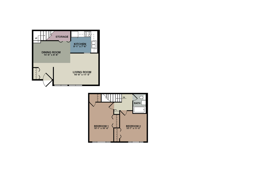 Apartment Model: 2TH- 2 Bedrroom Townhome2 Bedroom, 1 Bath, 860 sq ftUnavailable2TH- 2 Bedrroom Townhome - Floorplan 1 3 Bedrooms