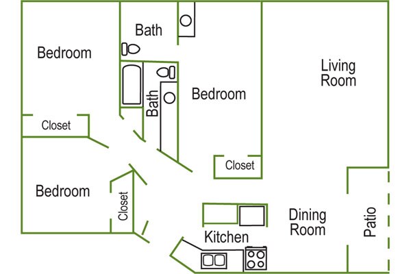 Apartment Model: 3bed/2bath3 Bedroom, 2 Bath, 1100 sq ftUnavailable![]()