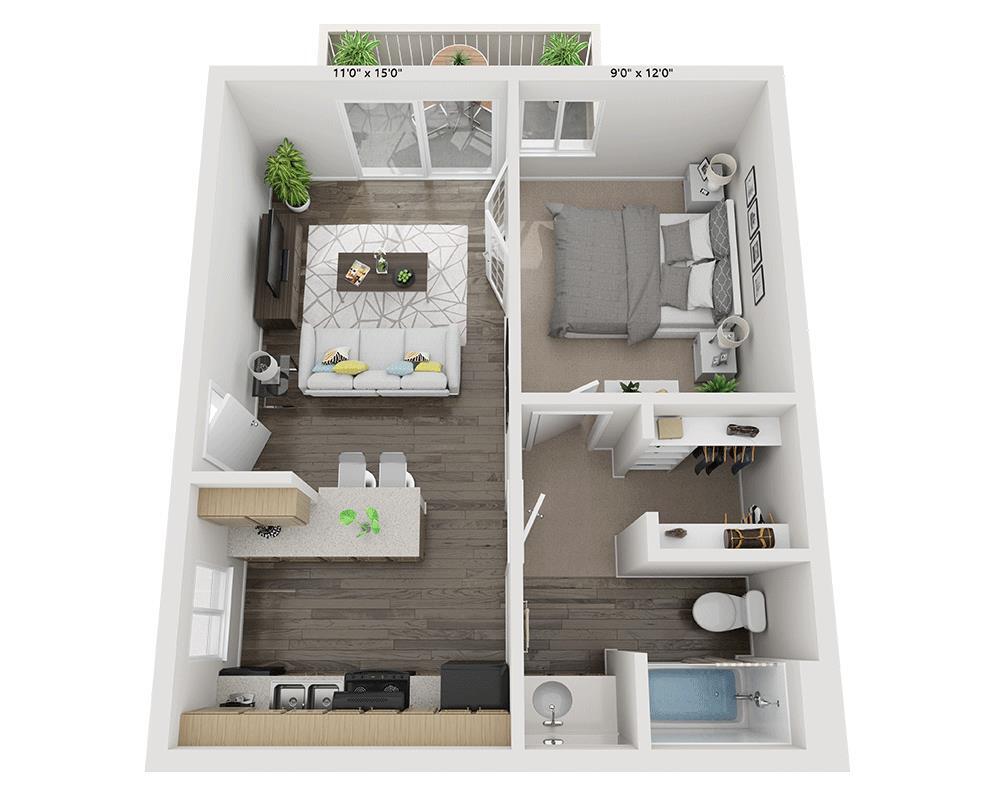 Apartment Model: Plan A1$2,8791 Bedroom, 1 Bath, 550 sq ftAvailable December 26, 2025![]()