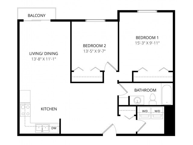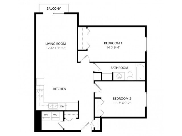 Balsom - Floorplan 1 Apartment Unit: B306Apartment Model: Balsom1 Bedroom, 1 Bath, 600 sq ftAvailable October 31, 20252 Bedrooms