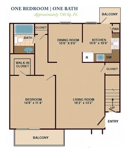One Bedroom A - Floorplan 1 2 Bedrooms