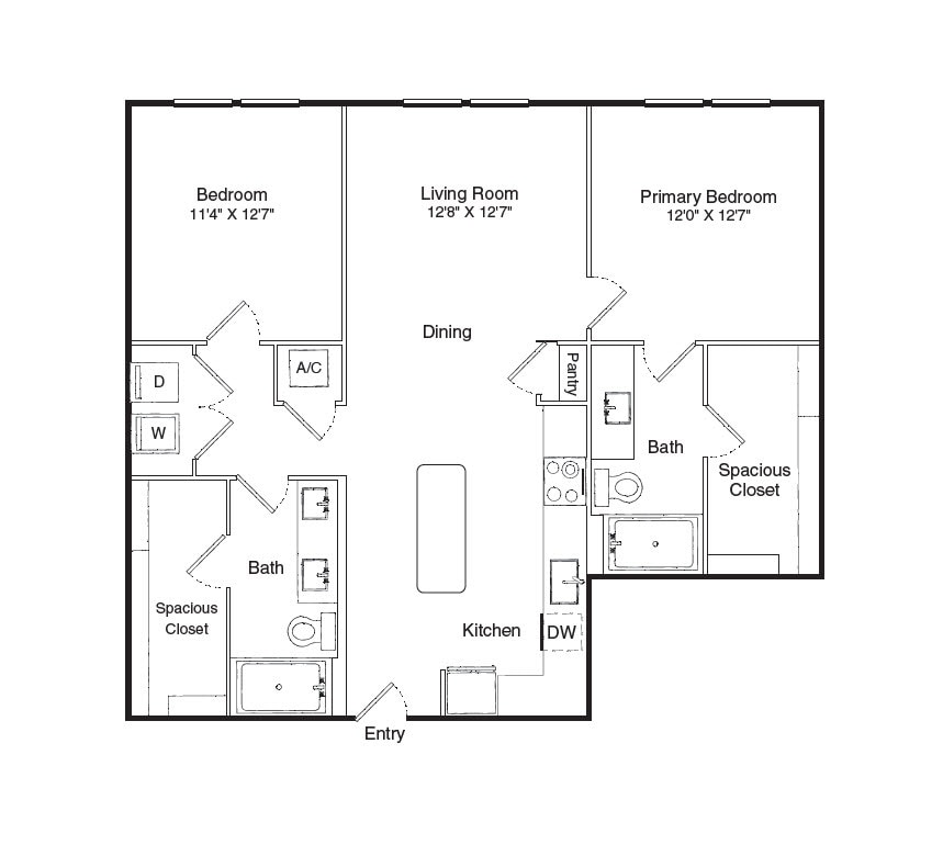 Apartment Model: B1From $1,3752 Bedroom, 2 Bath, 1064 sq ftAvailable NowFloor plans are artist's rendering. All dimensions are approximate. Actual product and specifications may vary in dimension or detail. Not all features are available in every rental home. Prices and availability are subject to change. Base rent is based on monthly frequency. Additional fees may apply, such as but not limited to package delivery, trash, water, amenities, etc. Deposits vary. Please see a representative for details.