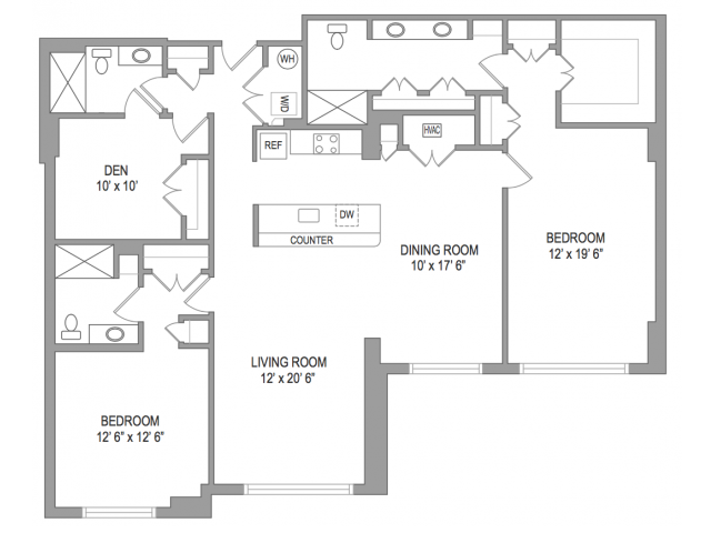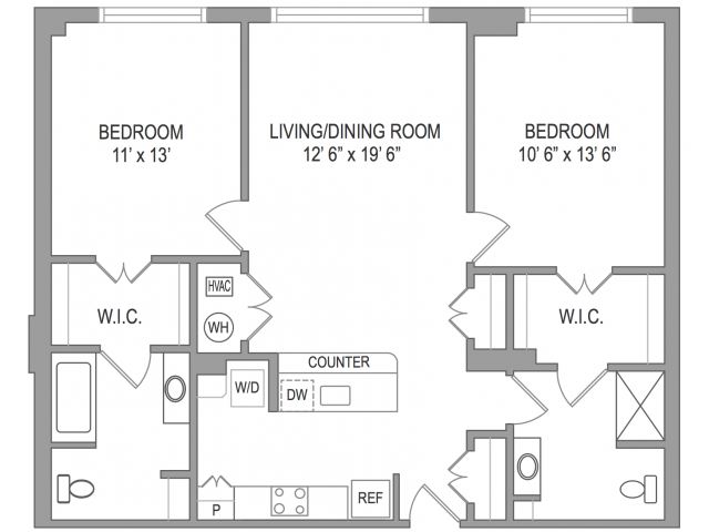 Apartment Model: 2x22 Bedroom, 2 Bath, 1000-1220 sq ftAvailable Now![]()