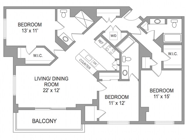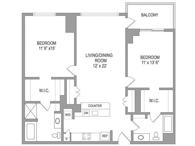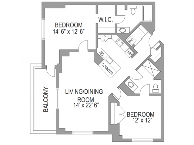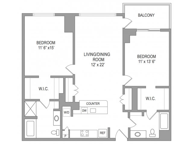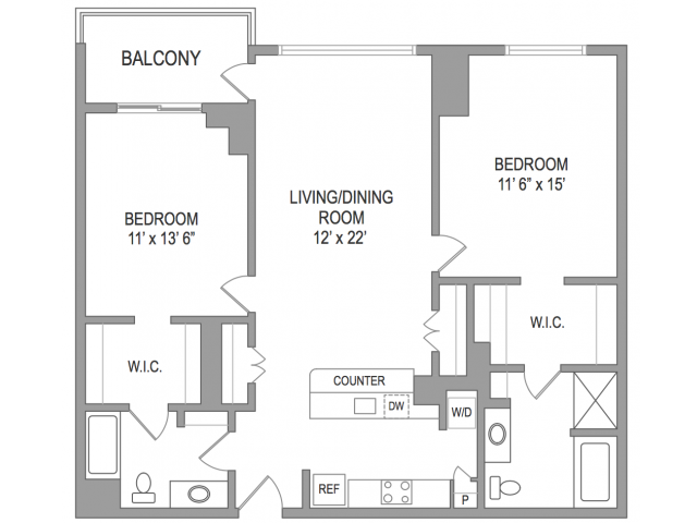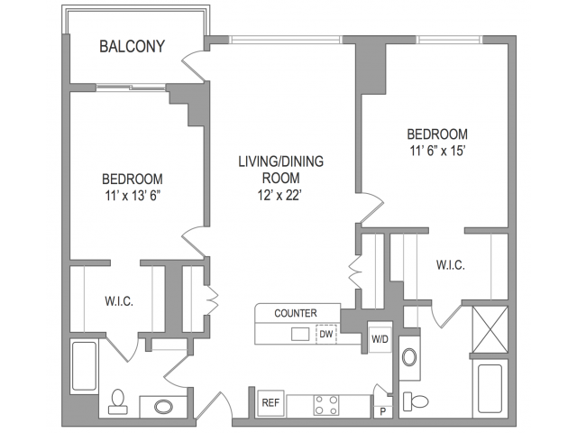 2x2 Balcony - Floorplan 1 Apartment Unit: 525-215Apartment Model: 2x2 Balcony2 Bedroom, 2 Bath, 1018 sq ftAvailable Now![]()