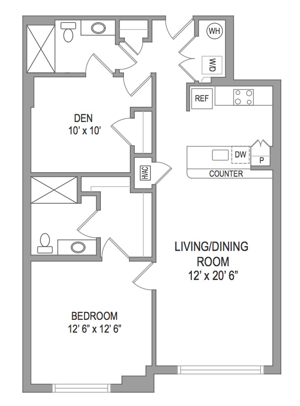 1x1 Handicap Accessible - Floorplan 1 1x1 Den