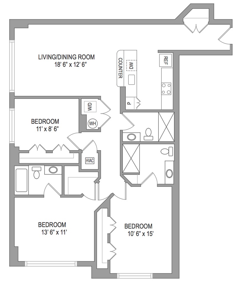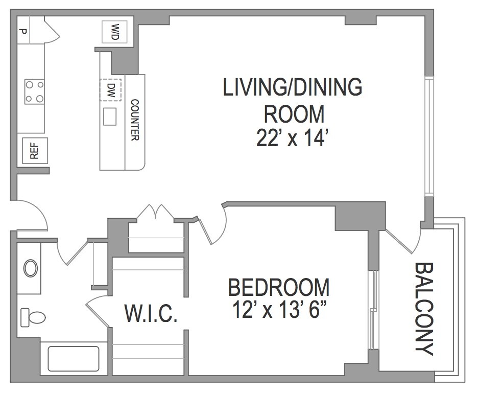 1x1 - Floorplan 2 1x1 Handicap Accessible