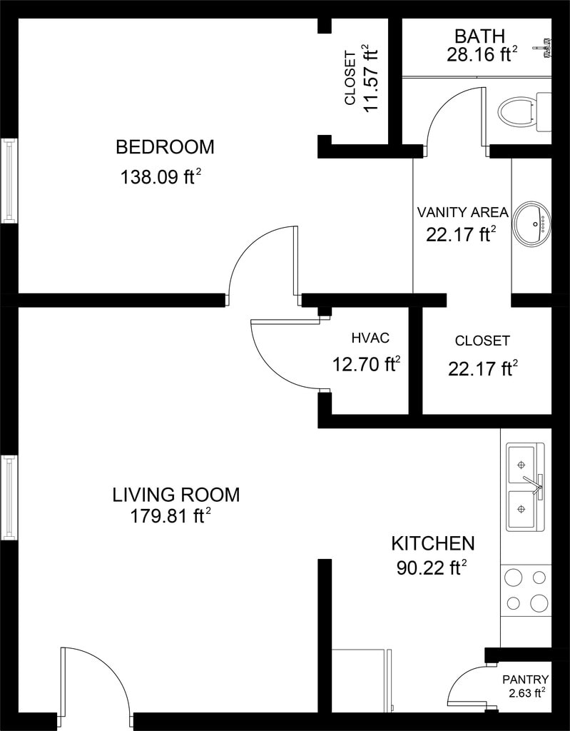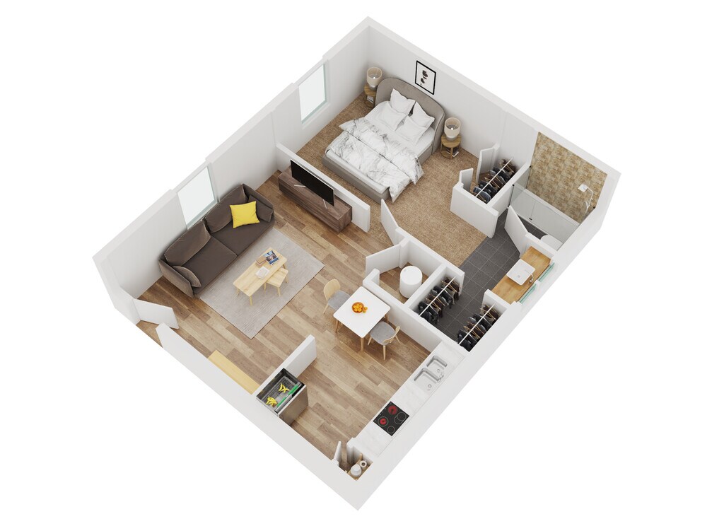 1 Bed, 1 Bath, 578 sq ftModel Gallery