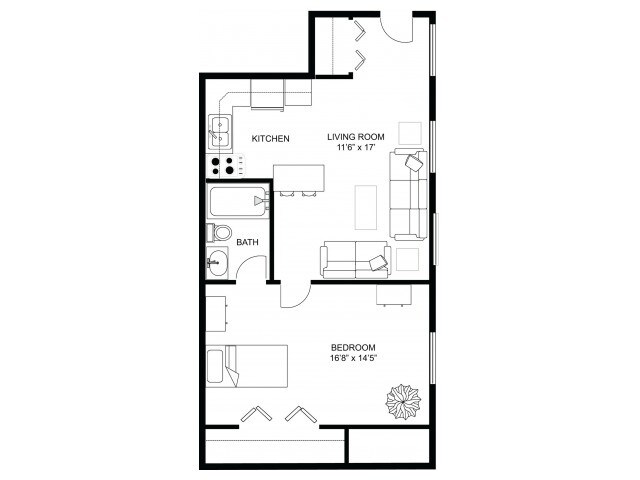 1 Bedroom, 1 Bathroom - Floorplan 1