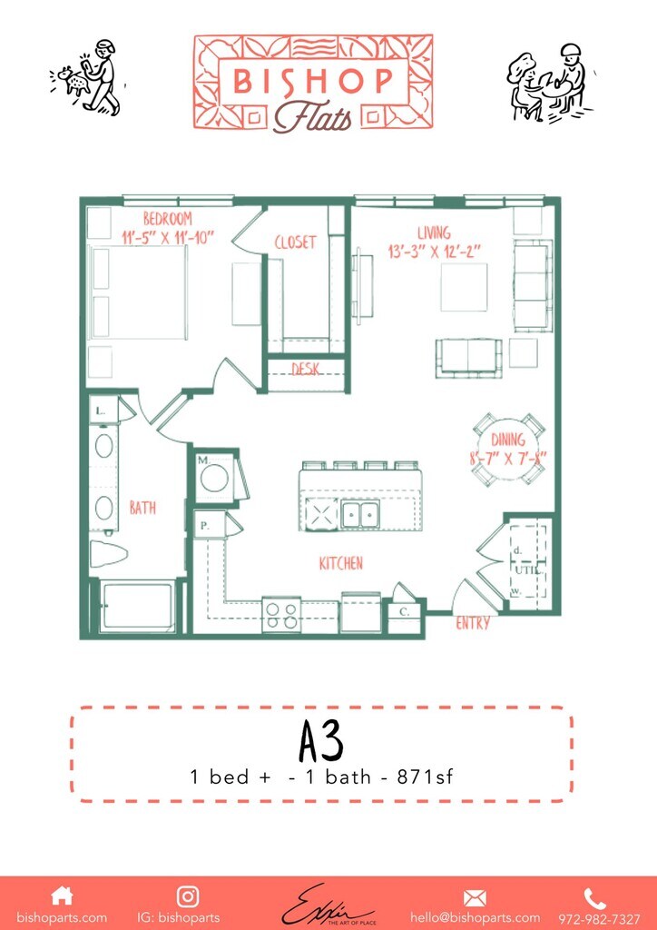 Artfully designed luxury apartment homes, located in the heart of the Bishop Arts District. Centrally located in a highly sought-after historic neighborhood in Dallas, Texas, just minutes from Downtown and Uptown Dallas. Thoughtfully situated near Dallas' finest restaurants, steps away from the city's best shopping, and walking distance to live music and entertainment. As a resident of Bishop Flats, you will have exclusive access to the amenities located at our sister property, just next door at Bishop North. Bishop Flats is more than just a place to live - it is a way to live. Call us today to schedule a tour!