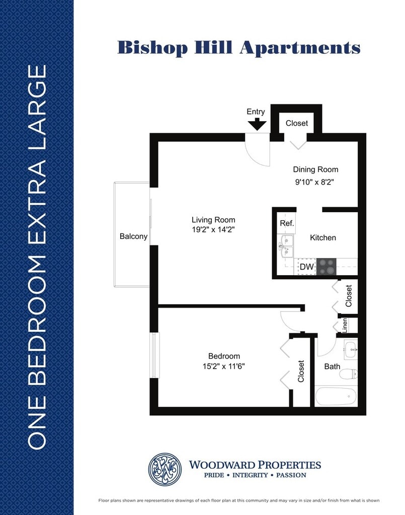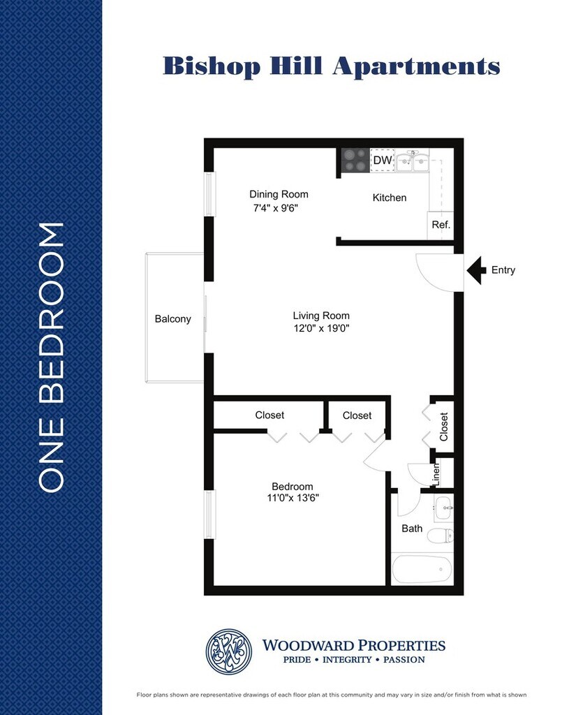 1 Bedroom to 2 Bedroom Apartments at Bishop Hill Apartments currently range from $1,279 to $1,639