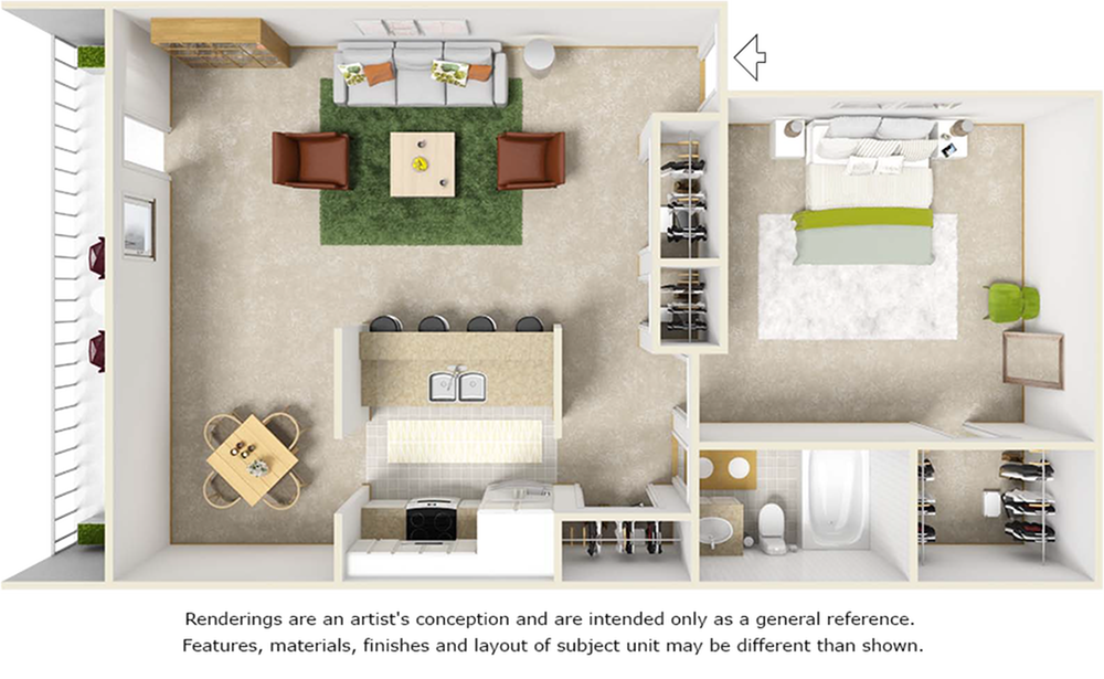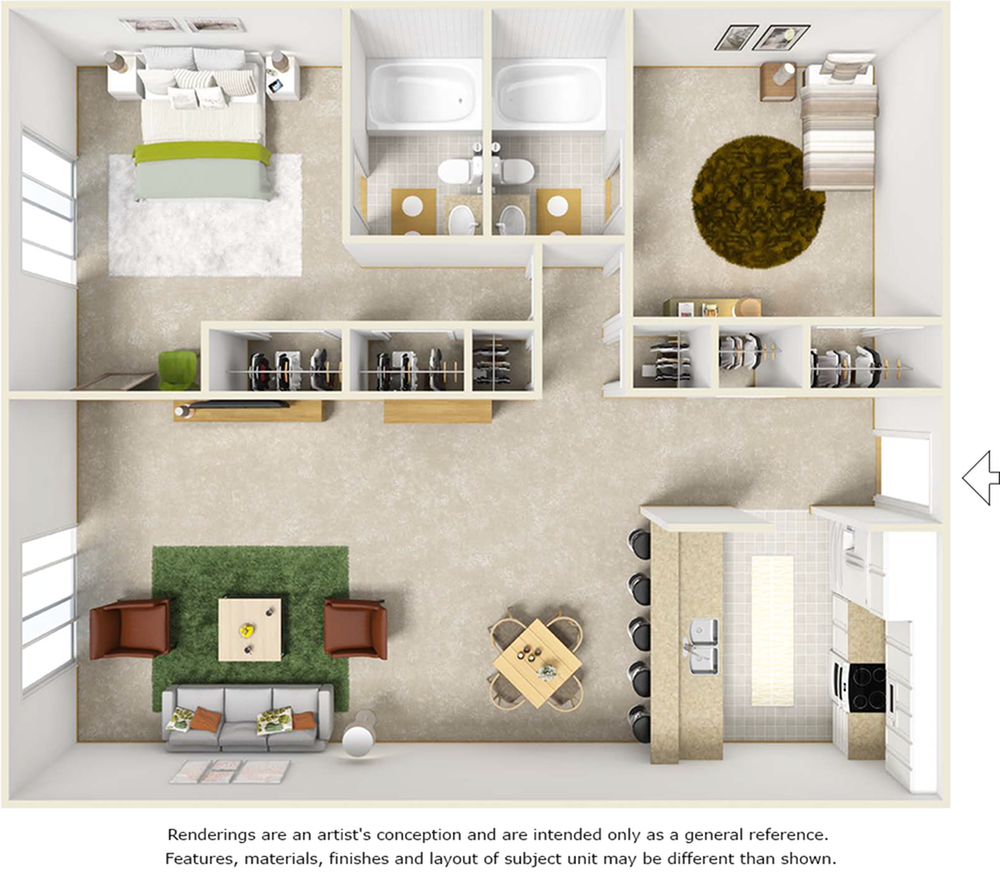 1 Bed, 1 Bath, 758 sq ftModel Gallery