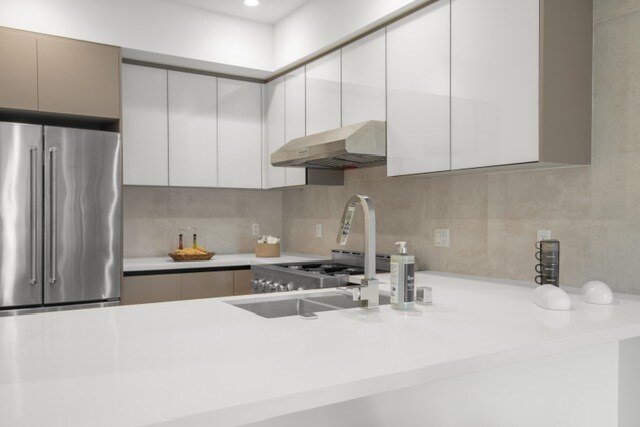 Experience luxurious modern living in this beautiful 3-bedroom, 3.5-bathroom apartment in the prestigious Beverly Grove area. This Penthouse is breathtaking! This prime location offers walkable access to many world-renowned restaurants, coffee shops, museums, the Beverly Center Mall, the Grove Shopping Mall, and the prestigious Cedars-Sinai Medical Hospital. Step inside to discover an open-concept living space welcoming abundant natural light and a spacious layout perfect for entertaining or relaxation. The chef-worthy kitchen features high-end Kitchen-Aid appliances, including a smart oven that can be conveniently controlled with an app on your phone, and a gas stove for culinary enthusiasts. Convenience is key with an in-unit washer and dryer, adding ease to your daily routine. Retreat to the primary bedroom, which boasts a luxurious walk-in closet, a generously sized bathroom with a walk-in shower, and a rejuvenating soaking bathtub. Don't miss the opportunity to make this exquisite apartment your new home, where convenience, style, and comfort converge in the heart of Beverly Grove. Furnished units available with an additional fee.