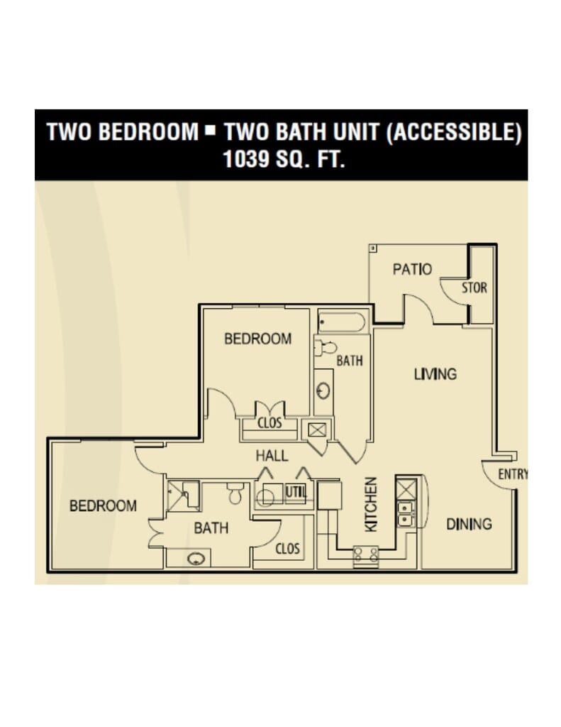 Apartment Model: B12 Bedroom, 2 Bath, 1039 sq ftAvailable NowFloorplansPhotos![]()