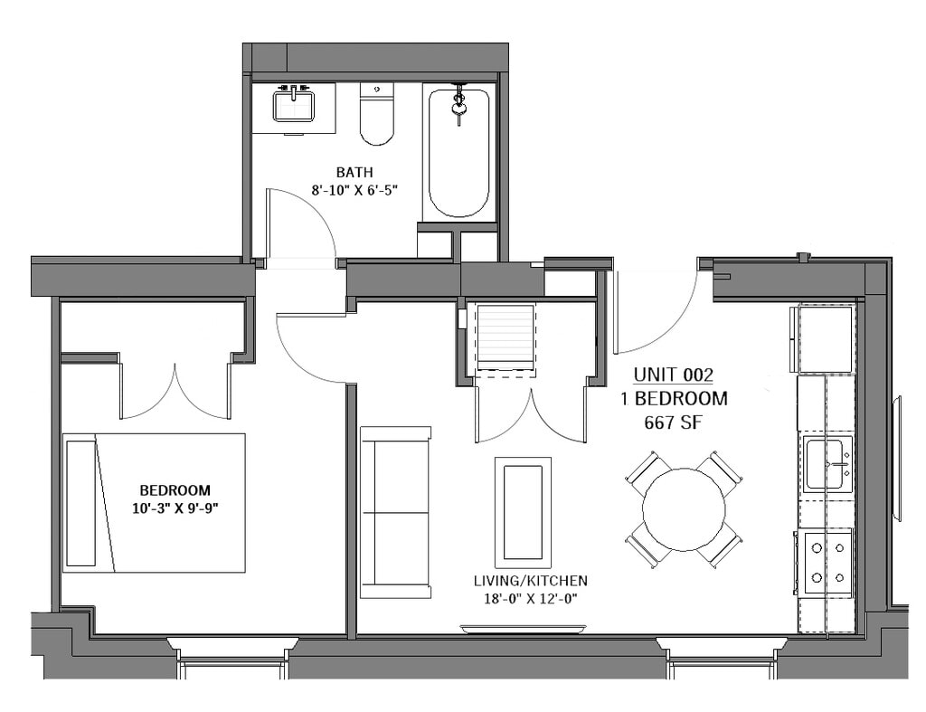 1x1 - Image 8 Apartment Unit: 002Apartment Model: 1x1$2,9001 Bedroom, 1 Bath, 667 sq ftAvailable June 1, 2026Apartment Unit: 003Apartment Model: 1x1$2,8001 Bedroom, 1 Bath, 519 sq ftAvailable June 1, 2026Apartment Unit: 004Apartment Model: 1x1$2,8001 Bedroom, 1 Bath, 541 sq ftAvailable June 1, 2026Floorplan 1x2